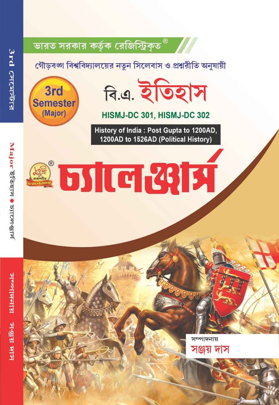 As per Gour Banga University’s latest syllabus, this Challengers Series textbook by Madhushree Prakashani, edited by Sanjay Das, covers History of India: Post Gupta to 1200 AD and 1200 AD to 1526 AD (Political History).