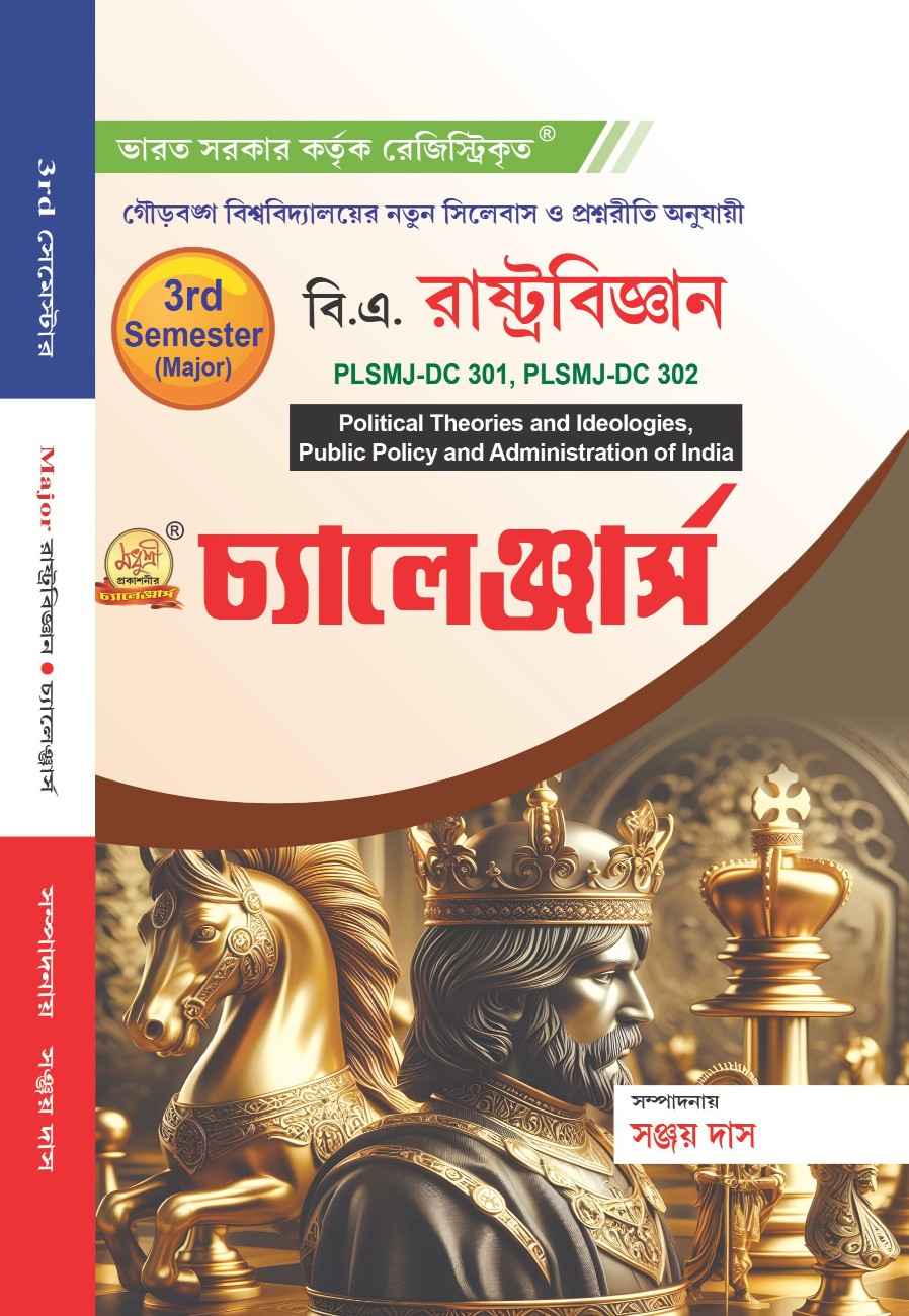 Based on Gour Banga University’s new syllabus, this Challengers Series book by Madhushree Prakashani, edited by Sanjay Das, covers Political Theories and Ideologies and Public Policy and Administration of India (PLSMJ-DC 301, PLSMJ-DC 302).